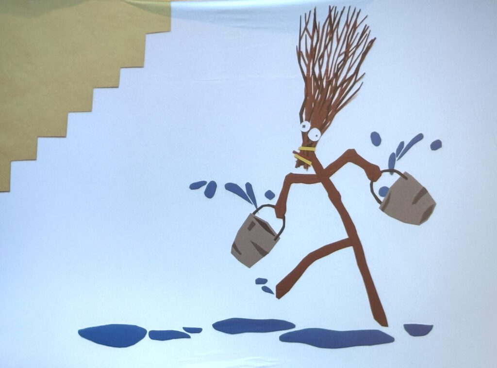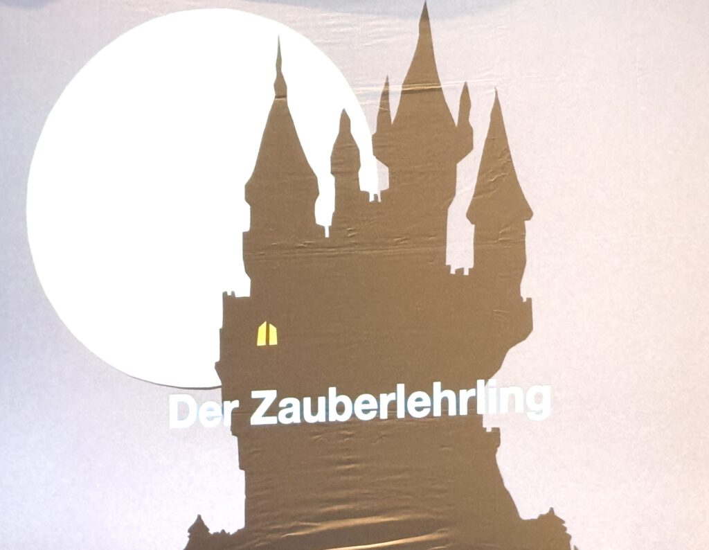 Der Moderator Michael Forster, der Erzähler der Geschichte des Zauberlehrlings, versuchte die Kinder in die Ballade einzuführen. Denn, nachdem der große Hexenmeister sein Schloss verlassen hatte, versuchte der Zauberlehrling seine Zauberkünste auszuprobieren. Übermütig zauberte er einen Besen herbei, der für ihn aus dem nahe gelegenen Fluss Wasser holen sollte. Als genügend Wasser vorhanden war, kann der Lehrling ihn aber nicht stoppen. Kein Zauberspruch hielt ihn ab und es kam zu einem Wasserchaos. Der Meister musste herbeieilen, um mit dem erlösenden Spruch dem Besen Einhalt zu gebieten.