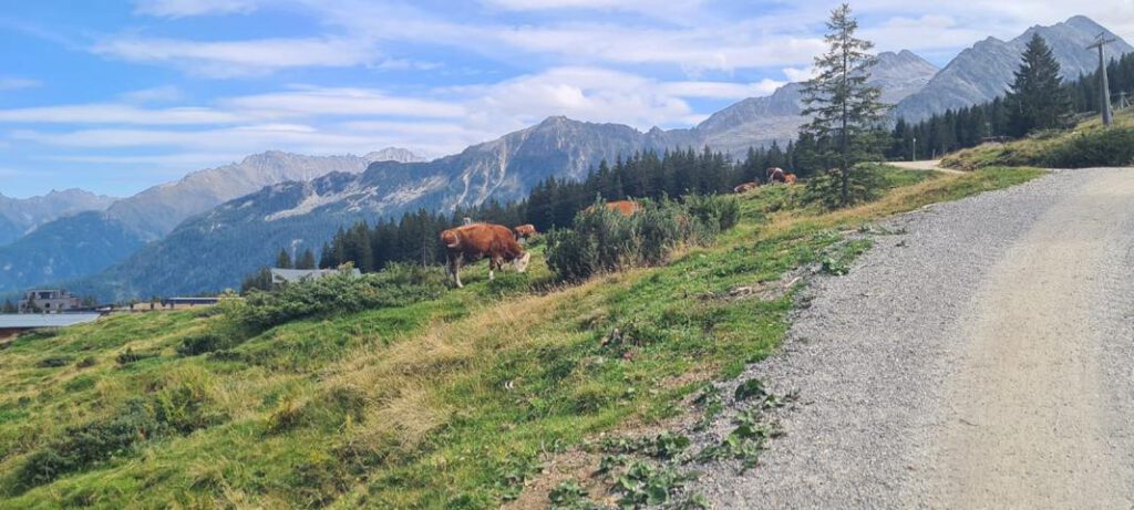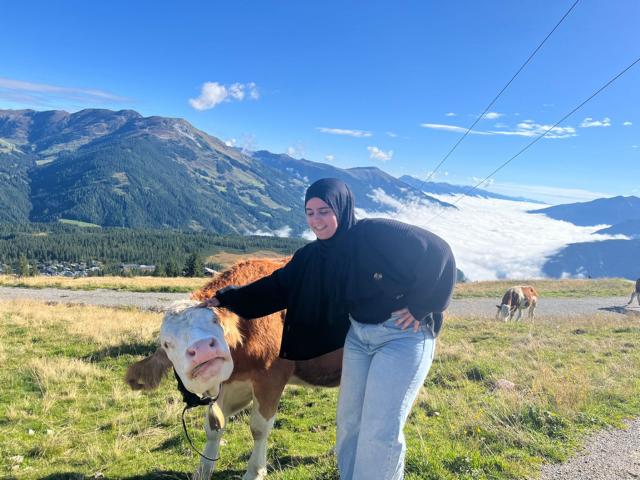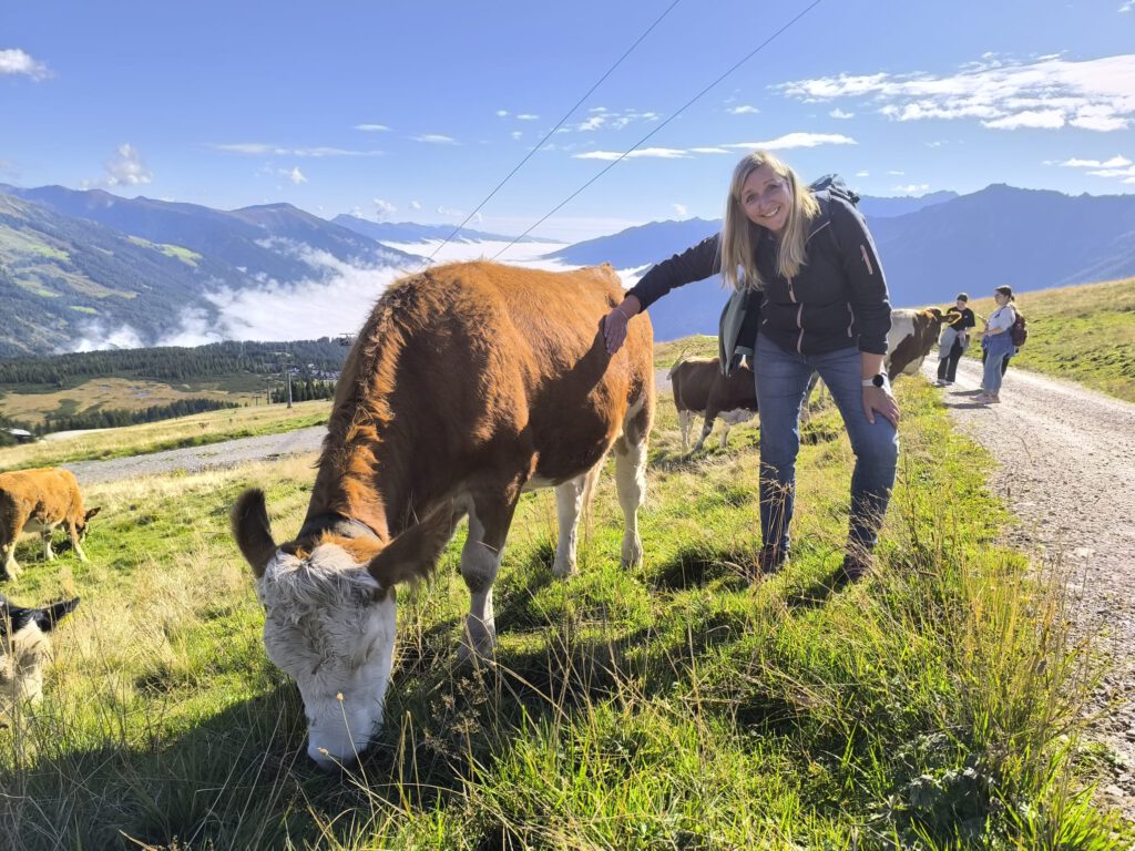 Während wir also über den Speichersee glitten, machten sich wiederum andere auf zu ihrer ersten Bergwanderung, wo viele der doch leicht ermüdeten Schülerinnen und Schüler und auch der Lehrkräfte jeden einzelnen Höhenmeter zu spüren bekamen. Belohnt wurden sie aber von dem sanften Glockengeläut der grasenden Kühe, die sich ganz und gar nicht menschenscheu sogar streicheln ließen.
