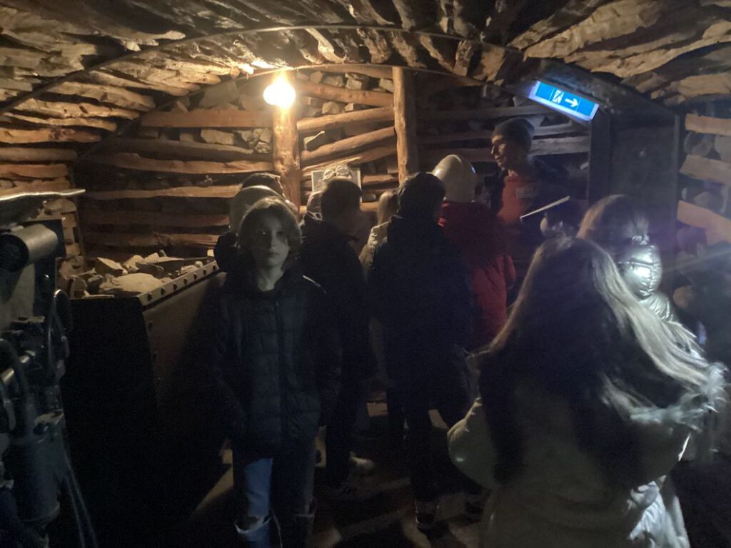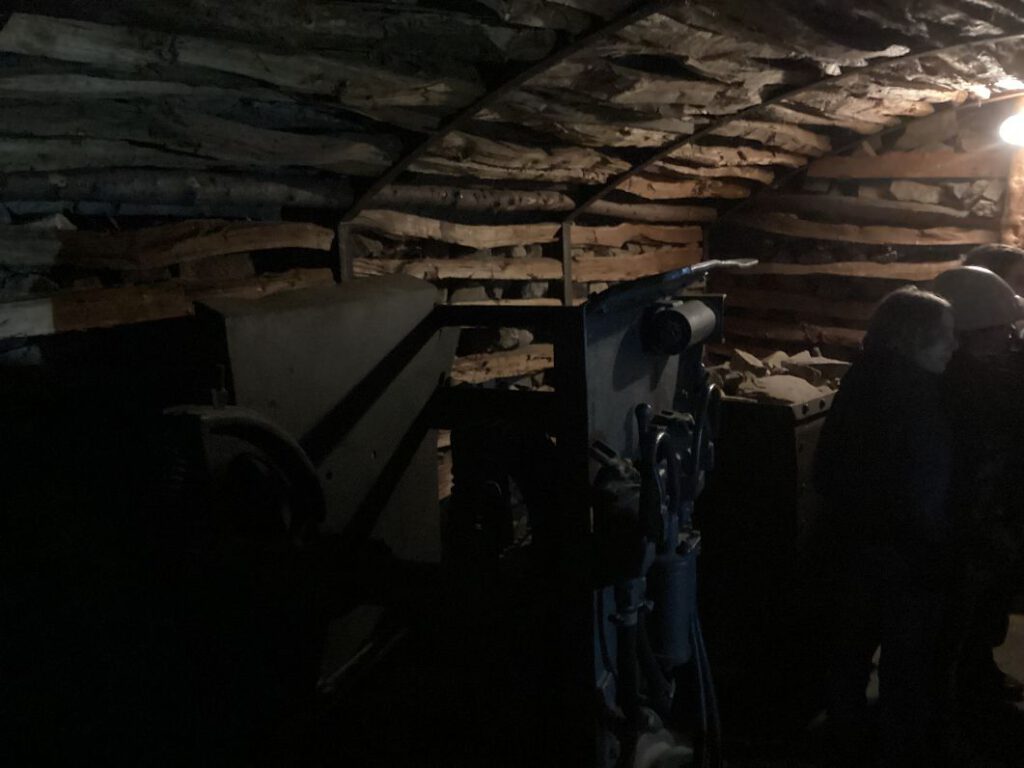 Alle Gruppen wurden durch das Kellergewölbe des Museums geführt, wo sie in naturgetreu nachgebauten Stollen eines Bergwerkes aus der Zeit miterleben konnten, wie viel Lärm eine Wasserpumpe so machte, wozu sie benutzt wurde oder was es bedeutete, wenn Gas in die Schächte eindrang und die Bergleute so manches Mal von Kanarienvögeln gewarnt wurden, die unmittelbar aufhörten zu zwitschern oder gar umfielen.