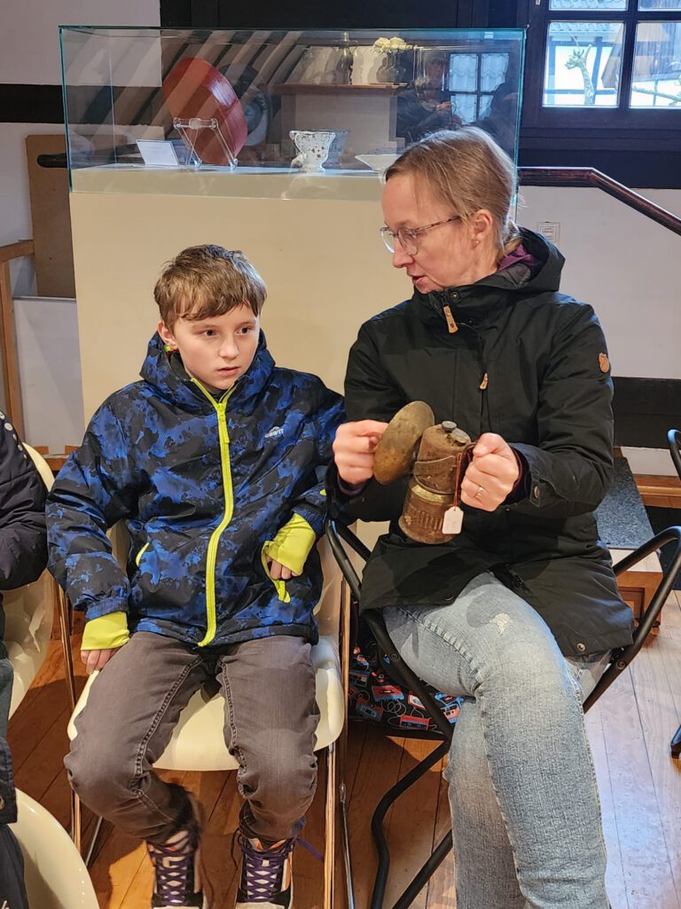 Dort angekommen, wurden unsere Schülerinnen und Schüler von drei pädagogischen Mitarbeiterinnen des Museums in Empfang genommen und dann in drei Gruppen eingeteilt, denn unser Tagesziel bestand darin, das Leben einer Bergarbeiterfamilie um ca. 1907 kennenzulernen.