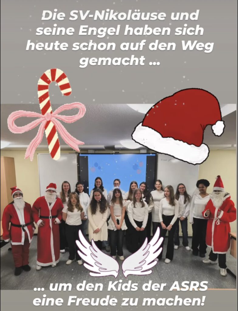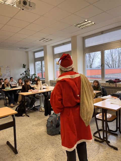 Als es am 5. Dezember 25 in der ersten Stunde an der Tür klopfte, erschraken einige aus der Klasse 6b. Sie hatten nicht damit gerechnet, dass die Nikoläuse und Engel der SV schon an diesem Tag unterwegs waren, um ihnen eine Freude zu bereiten.