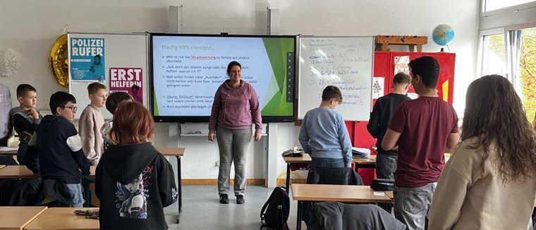 Die Referentin als auch das Team der Schulsozialarbeit sensibilisierten die Schülerinnen und Schüler der Jahrgangsstufe 6 anhand von Filmen und kooperativen Spielen für dieses Thema. Sie hatten sich eigens dafür vier Schulstunden Zeit genommen, um mit jeder der sechsten Klassen intensiv unterschiedliche Situationen der Zivilcourage zu besprechen.
