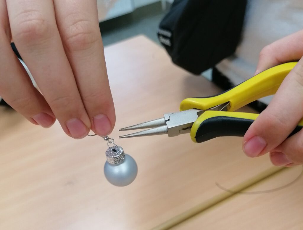 Jeden Montag trifft sich die Schmuck – AG, um schöne Ohrgehänge und anderes Geschmeide zu fertigen.