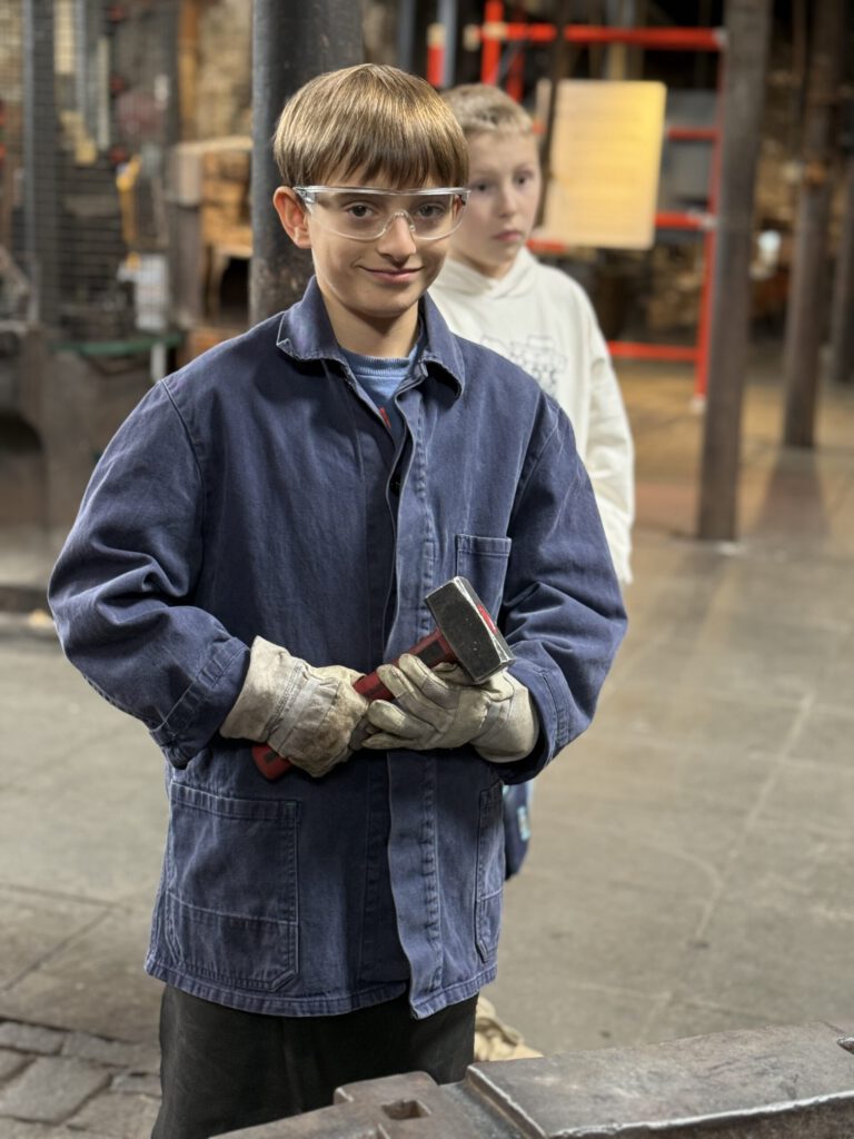„Das Schmieden ist ganz schön anstrengend“, berichtet Mustafa. Er war gemeinsam mit seiner Klasse 6b letzten Mittwoch auf einem Kulturscoutausflug in der Gesenkschmiede Hendrichs in Solingen.